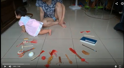 所以老P太太用最便宜的方式,網路上買抓周的道具,把亮亮打扮的漂漂亮亮,自己在家裡舉行抓周的儀式。
