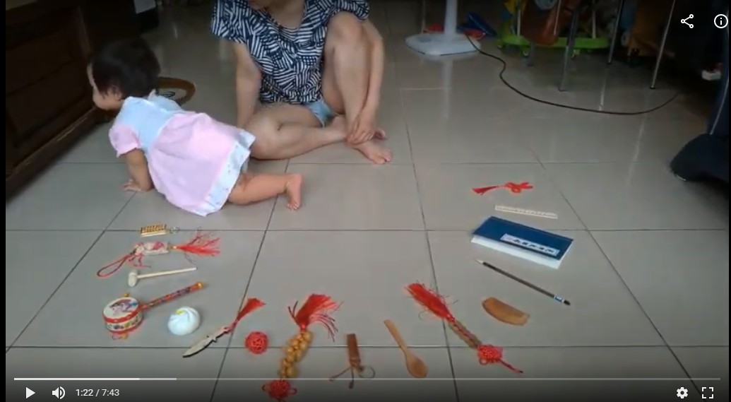 老P和太太看著亮亮啃著波浪鼓三分鐘,這期間太太還拿其它道具勾引亮亮,但她完全沒興趣,只顧啃她的波浪鼓