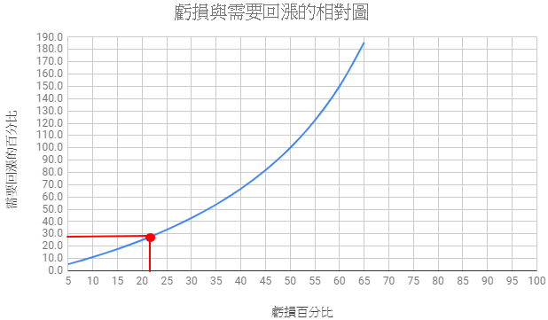 預期年報酬=(1 +需要回漲的百分比)^(1 /需要回漲的年數)– 1